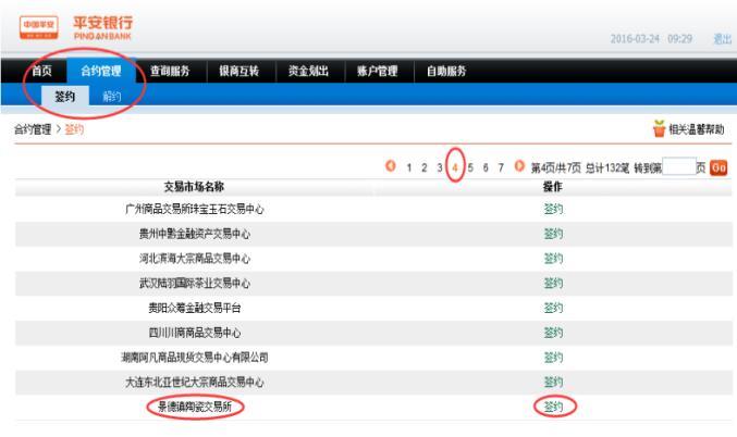 會員登錄系統(tǒng),進入合約管理簽約功能,系統(tǒng)返回所有交易市場,選擇【景德鎮(zhèn)陶瓷交易所】,點擊簽約按鈕進行簽約操作。