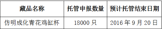 應(yīng)發(fā)行會員申請,經(jīng)景德鎮(zhèn)陶瓷交易所有限公司(以下簡稱本交易所)研究決定,下列藏品進入托管流程。本交易所將對申請入市藏品統(tǒng)一組織相關(guān)專業(yè)鑒定,具體事項如下: