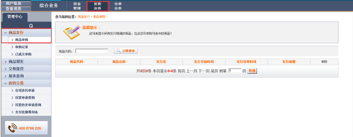 通過該頁面可以查詢到配售商品的情況。如圖2.2.2-1