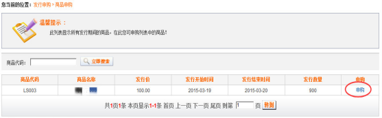 ①顯示所有發(fā)行期間的商品,在此可以進行申購。如圖2.1.1-1