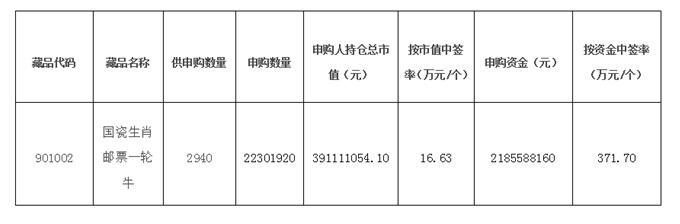 2016171關于《國瓷生肖郵票一輪牛》藏品申購中簽公告
