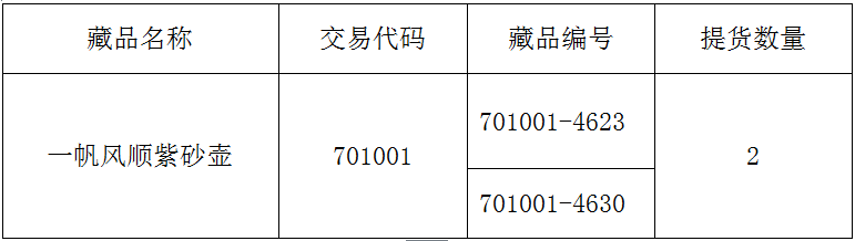 2018004關于交易藏品《一帆風順紫砂壺》提貨公告